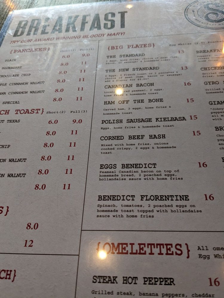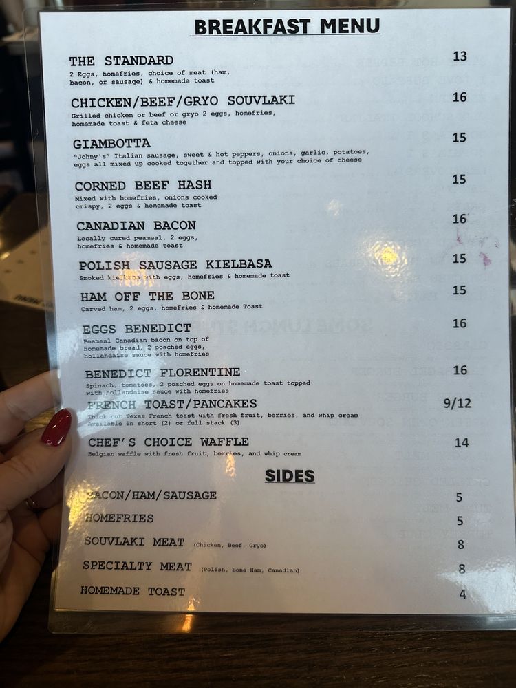 “ This was our first meal at the "new" location and we were not disappointed! We ordered chocolate chip pancakes, a breakfast skillet, and a gyro souvlaki breakfast. This food was amazing; everything tasted like quality product and had great flavor. I am usually not a potato person but absolutely loved the crunch and seasoning of the home fries. Their homemade toast is also out of this world. We got drinks, too, a house mimosa and a bloody mary. Both were delicious. The food and our service were great! ”